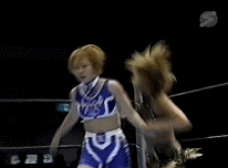 This match is for the QUEEN OF ARSION Championship. Of these two, you are probably more familar with Ayako Hamada, but back in 2001 they were two of the brightest stars in ARSION. Omukai debuted in AJW in 1992 and continued wrestling until 2007, enjoying a solid 15 year career that saw her win several titles mostly in the tag team ranks. Hamada is the daughter of Gran Hamada, she is the current Pro Wrestling WAVE Ace and in 2001 was seen as the top young wrestler to begin her career in ARSION. Hamada defeated Aja Kong on December 3rd, 2000 to win the title (not long before Kong left the promotion), and last successfully defended the title against Mariko Yoshida in April.