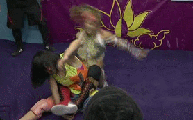 Even though Kotori is wrestling in a small room on a mat, she is actually a pretty solid young wrestler. Trained by Emi Sakura, Kotori is only 17 years old but has wrestled for three years and shows a lot of potential if she sticks with it (and branches out of Gatoh Move a bit more). SAKI is affiliated with LLPW-X and is a lower level indy wrestler, but she has been wrestling quite a bit in JWP this year as she wrestles with her tag partner MIZUKI.