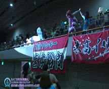 Murakami and Matsumoto start off, Matsumoto slaps Murakami and then runs like hell. Sound decision. But she isn’t running from him, but up to a mat up on the stage so they can grapple. Murakami goes after her and rakes her face on the ramp, but Akemi comes to her rescue and everyone beats down Murakami. Wrestlers are brawling everywhere, with some staying on up the stage while others are in the crowd, pins are apparently legal up on the stage where Murakami is grappling with random wrestlers. Matsumoto is insanely up in the bleachers, she stands up on the rail and dives down onto wrestlers on the floor. We clip ahead to Matsumoto being in the ring on the top rope, about to do a move on Akemi, but Murakami comes in so she hops down. Murakami sits down on Matsumoto in the corner, Matsumoto rolls up Murakami with assistance and everyone holds down Murakami for the three count! Matsumoto, 235, and Ueki win!
