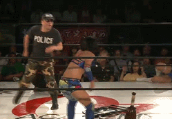 Keep in mind as we roll along that Shida and Syuri have weapons too in their arsenal (a kendo stick and a giant bat, respectively), so the fact they are outnumbered isn’t as bad as it looks. They are jumped before they can even get into the ring however and beaten around the floor, with Police happily joining in. Shida has chairs thrown at her along with other forms of brutality until Ozaki and Shida finally get in the ring as Ozaki beats her with a chain. Ozaki tags in Ohka, who comes in with her whip and she hits Shida with it several times, cover by Ohka but it gets a two count. Ozaki returns and Shida is triple teamed in the apron, Ozaki puts Shida in a choke hold and rakes her eyes until Syuri comes in to break it up, but Mio sends Syuri back out to the apron. Ozaki tags Ohka as the beatdown on Shida continues, she finally gets the upper and suplexes Ohka into Ozaki. She makes the hot tag to Syuri, kicks by Syuri to both Ozaki and Ohka and she gets her giant bat. She throws it at Ozaki and covers her, but Mio won’t make the count. Ohka jumps Syuri from behind but Syuri kicks both of them before hitting a suplex on Ozaki. PK by Syuri, she gets her bat again as Police comes in with a chair, Syuri hits the chair out of his hand and then nails him with a high kick. Syuri stacks Police and a chair onto Ozaki and then rams the bat down onto both of them, but Ozaki hits a spinning double chop and tags in Ohka.