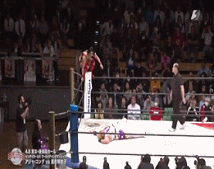 To prove my point, this one begins in progress as Eiger spits dust (I guess) into Lee’s face. Lee rolls out of the ring but Eiger goes after her and walks around looking creepy while she scares the audience. This goes on for a bit, and is pretty funny, but we have to get back to the ring at some point as Lee chains up Eiger and dropkicks her in the head. Cover, but it is broken up by another wrestler (95% sure it is Sakura Hirota, but wrestlers out of their normal wrestling attire look different). She loosens Eiger’s chains, high kicks by Lee to Eiger but Eiger fires back with a lariat. Another high kick by Lee and she hits the Chokebomb for the three count! Alex Lee wins.