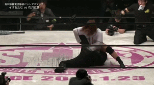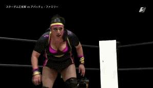 Tam grabs the exploding bat while Io knocks Natsu off the apron, Tam goes to hit Kagetsu with the bat but Kagetsu ducks. Kagetsu gets the bat but Io hits a swandive dropkick on her, running double knee by Io to Kagetsu in the corner and she hits a second one, cover by Io but it gets a two count. Io goes up top but Kagetsu knocks her to the apron, she superplexes Io back into the ring and covers her for two. Kicks by Kagetsu, she picks up Io and drops her with a chokeslam. Ebisu Drop by Kagetsu, she goes up top and nails the Oedo Coaster, but Tam breaks up the cover. Kagetsu picks up Io and kicks her in the head, she gets the exploding bat and hits Io in the chest with it a few times before she hits the button to make it explosive. Kagetsu finally hits the button, she then hits Io in the chest again with the bat, sending sparks flying everywhere. Io rolls out of the ring and gets water poured on her before she is rushed to the back, temporarily leaving Tam alone. Natsu slides Tam into the ring, Kagetsu gets the bat again and gives it to Natsu, but Io is suddenly back and hits a missile dropkick onto Natsu. Io hits Natsu repeatedly in the chest with the bat (its not explosive at the moment), cover by Io but it gets a two count. Io goes for the double underhook facebuster but Natsu gets out of it and whips Io repeatedly. Natsu scoops up Io but Io slides away, waistlock by Io but Natsu gets into the ropes and Kagetsu hits Io with the bat. Roll-up by Natsu to Io, but Tam breaks it up.