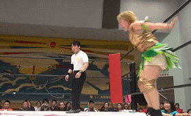 Jumping elbow by Kagetsu and she hits a missile dropkick followed by another jumping elbow for two. More elbows by Kagetsu but Iwatani hits a superkick, Matsumoto runs in to assist as Kagetsu hits a missile dropkick off the ropes. Shirai flies in with a double missile dropkick, then Iwatani dropkicks Kagetsu while she is against the ropes. Iwatani hits a footstomp off the second rope, she goes all the way up but Matsumoto joins her and hits a superplex. Vertical suplex by Kagetsu but Shirai breaks up the cover, but Shirai eats a double team from Kagetsu and Matsumoto. Iwatani and Shirai hit stereo hurricanranas, then both hit a buzzsaw kick to Kagetsu and Matsumoto. Shirai picks up Kagetsu and nails an assisted piledriver onto Matsumoto, Iwatani picks up Kagetsu but Kagetsu blocks the dragon suplex. High kick by Kagetsu and she goes for a roll-up but Iwatani reverses it for two. Iwatani grabs Kagetsu and this time she nails the dragon suplex hold, picking up the three count! Thunder Rock are still the champions!