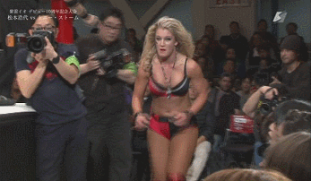 Tie-up to start, Storm gets Matsumoto to the mat but Matsumoto reverses spots with her. Storm gets away as they return to their feet, Storm stretches Matsumoto and hits a few uppercuts before snapmaring Matsumoto to the mat. Hip attacks by Storm, she kicks Matsumoto into the corner but Matsumoto avoids the running hip attack and chops Storm in the corner. Matsumoto hits a few hip attacks of her own, she picks up Storm onto her shoulders but Storm grabs the ropes and slides to the apron. Matsumoto charges Storm but Storm holds down the ropes and Matsumoto ends up on the apron with her. Still on the apron they trade strikes, Storm picks up Matsumoto but Matsumoto slides away and goes for a powerbomb.