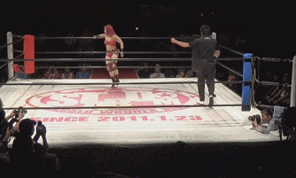 Hana poses to start the match, she challenges Mayu to do the same but then dumps Mayu out of the ring when she finally does so. Hana tosses Mayu around the ring before choking her with a chair, she gets a parking cone and hits Mayu repeatedly with it. Hana rolls Mayu back into the ring and stomps down on her leg, she puts Mayu’s leg on the second rope and dropkicks her in the knee. Hana keeps on Mayu’s leg and stomps on her head a bit, she goes off the ropes but Mayu catches her with a back elbow. Hana comes back with a knee, she goes for a vertical suplex but Mayu blocks it and puts Hana in a guillotine. Back kick by Mayu, she goes off the ropes and dropkicks Hana in the chest for a two count cover. Mayu goes for a superkick but Hana catches her leg and puts Mayu in an ankle hold. Mayu eventually gets into the ropes for the break, Hana stomps on Mayu and hits a pair of running boots. Cover by Hana, but Mayu gets a shoulder up. Hana puts Mayu on the top turnbuckle and joins her, superplex by Hana and she covers Mayu for another two count. Hana goes up top and hits the missile dropkick, but Mayu barely kicks out in time. Sleeper by Hana but Mayu gets into the ropes, she goes up top again but Mayu kicks her before she can jump off and suplexes Hana to the mat. Mayu gets on the second turnbuckle and hits a diving footstomp, Mayu goes for the dragon suplex but Hana blocks it and slaps Mayu in the face. Dropkick by Mayu, she goes for a superkick but Hana schoolboys her for two. Mayu goes up top and nails the Frog Splash, she drags up Hana and goes for the dragon suplex, but suddenly Kagetsu appears and hits a swandive dropkick from the apron! She dropkicks the referee too, and at some point in his Hana Kimura is DQed. Your winner is Mayu Iwatani!